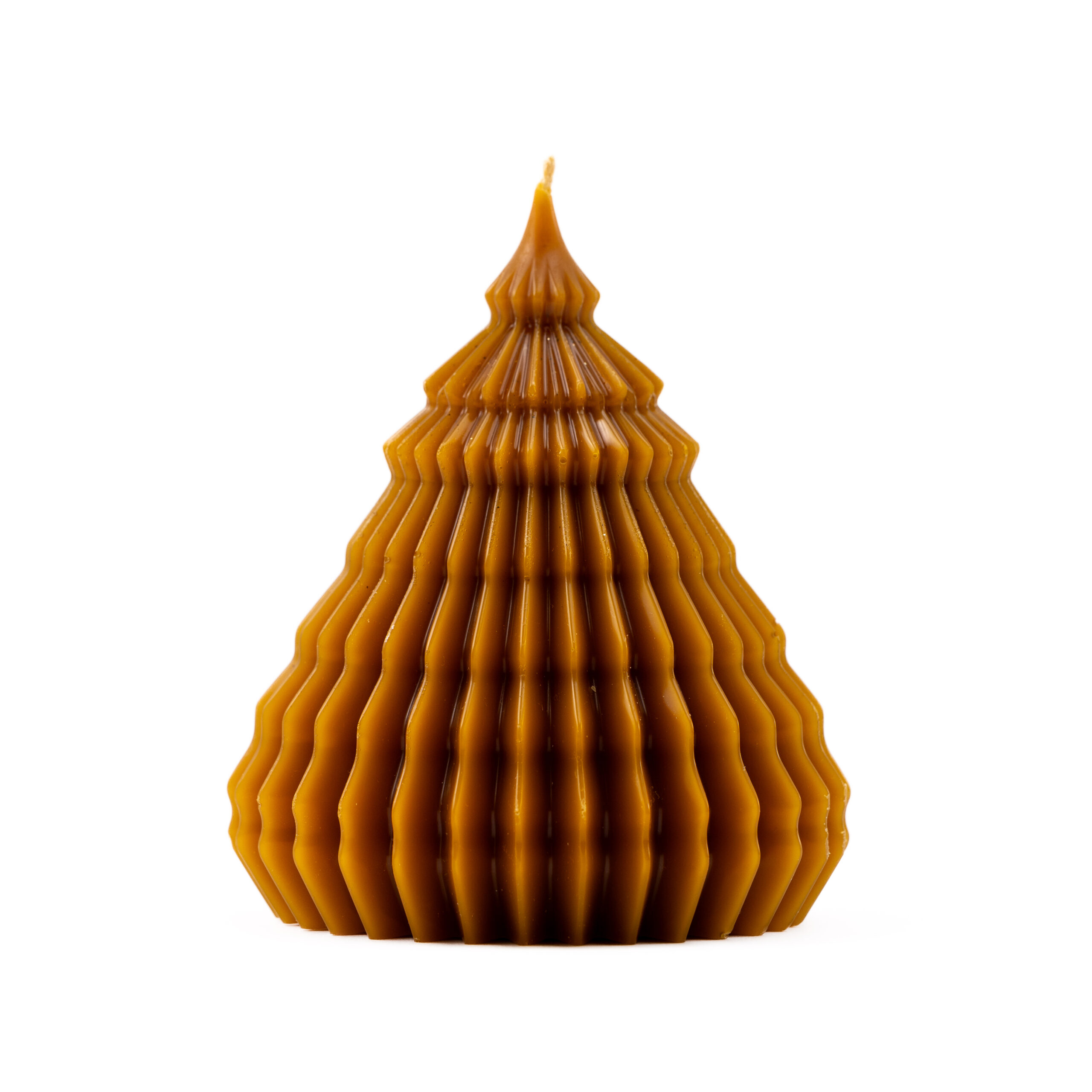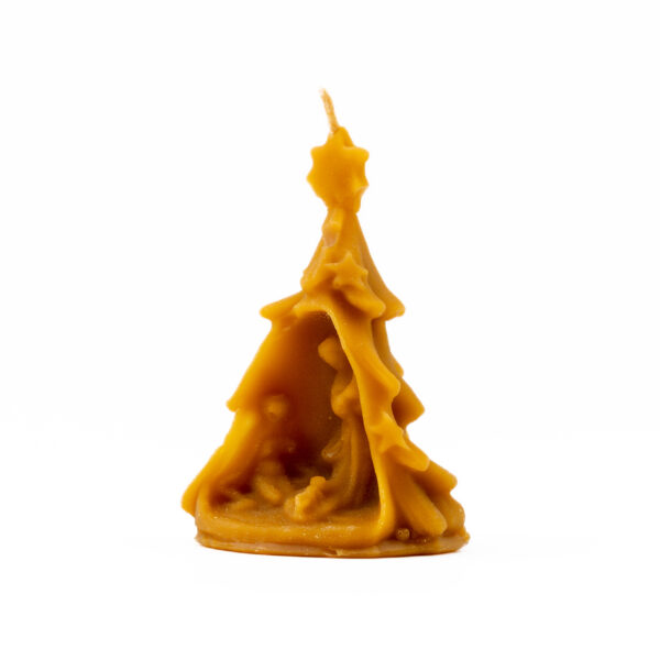 Vela artesanal em formato de pinheiro, cuidadosamente esculpida à mão com detalhes que remetem à natureza. Perfeita para decorar ambientes e criar uma atmosfera acolhedora e charmosa, trazendo um toque de elegância rústica.